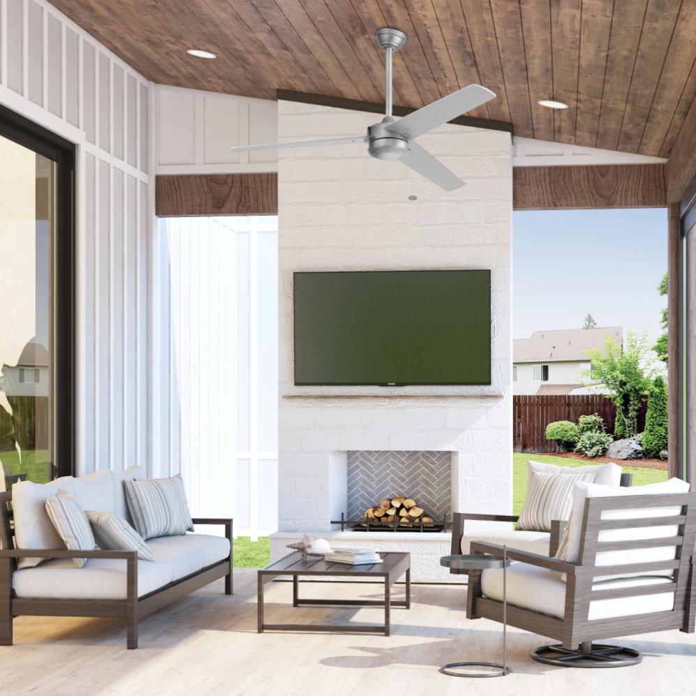 Neutral colors such as white, black or brushed nickel readily match with any out-of-doors environment. A stylish fan will enhance beauty and personalities to your patio keeping it cool at the same time.