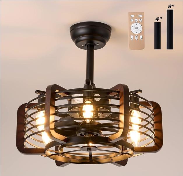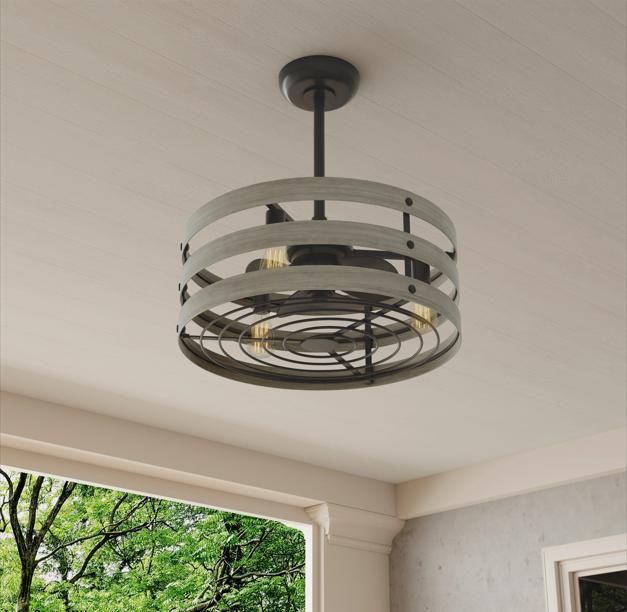 Caged ceiling fan with light allows you to enjoy cool and bright air and not to be afraid of accidental contact or damage caused by its smart and safe design.